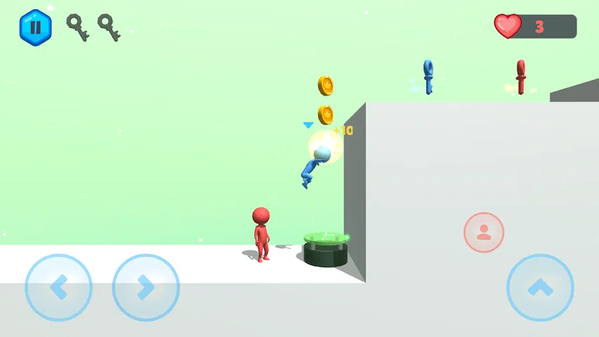 享受团队冒险的乐趣。共同努力解决难题,找到钥匙并打开门。红色和蓝色的火柴人互相帮助打开门、飞行、游泳、克服陷阱并在他们的冒险中走得更远。玩得开心