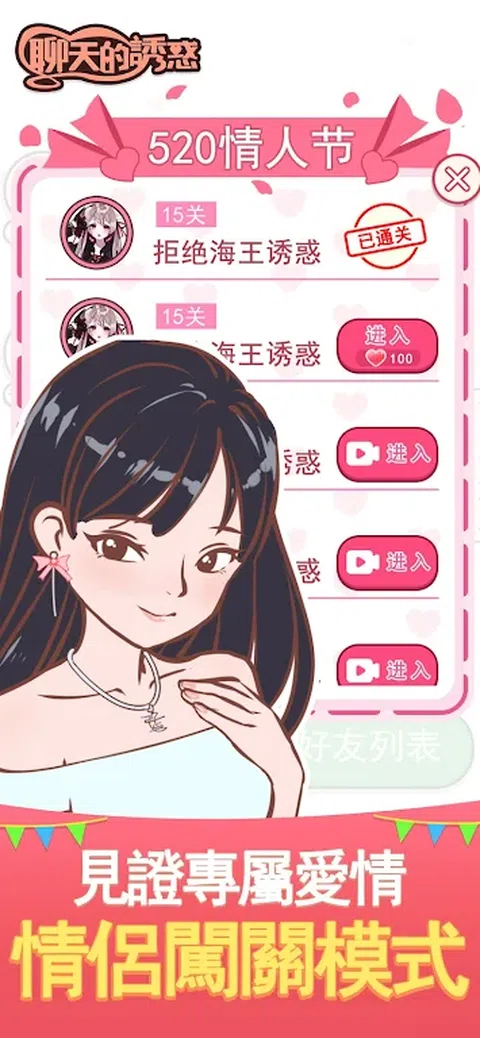聊天的诱惑是一款模拟聊天对话的游戏,在游戏中你会面临各种选择,不同的选择将引导你朝向不同的结局,根据关卡的关键词来找出相应的信息。还有好友列表与语音通话,超多超丰富的剧情等待你的解锁,快来体验吧