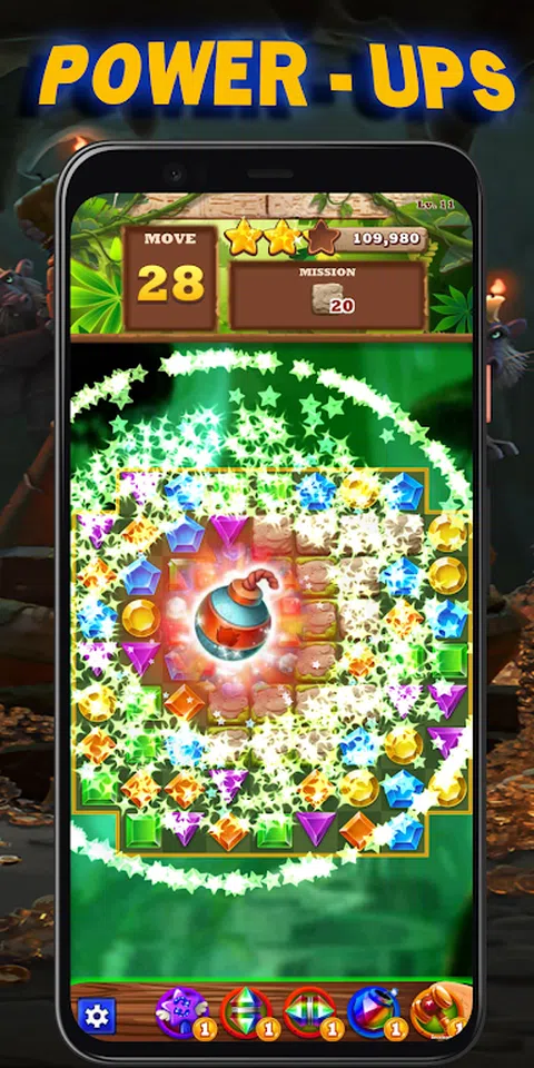 在这个新的匹配游戏中破解拼图并搭配宝石和珠宝。当你试图揭开一个古老的宝藏丛林故事时,有数百个级别。 如何播放和功能: *免费每日奖励