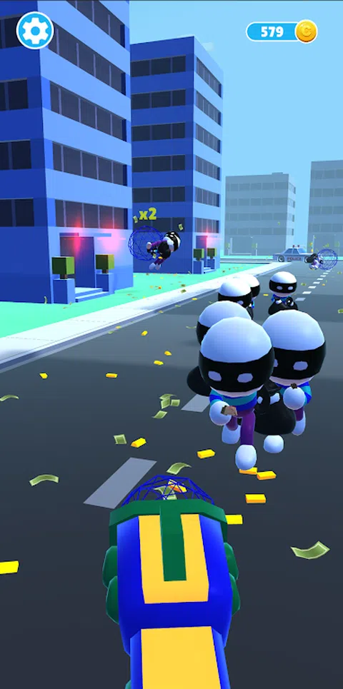 保护您的城市免受劫匪! 使用“特殊粘性枪”释放粘性球并击败劫匪