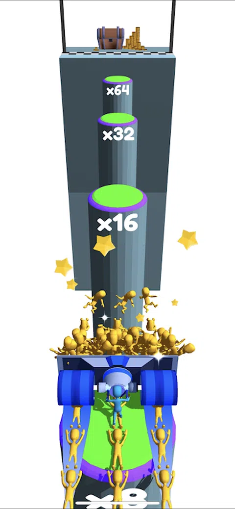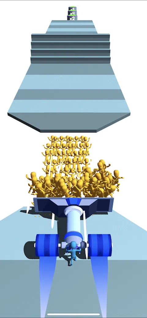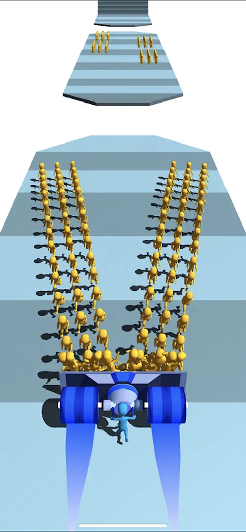 收集尽可能多的人冲向你,以便将他们射出,形成一座人类桥梁。 这座桥将成功地让你穿过平台到达终点。 当心你收集的人越少,你到达另一边的可能性就越小