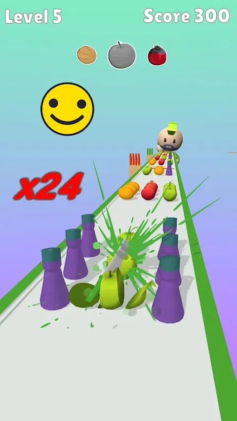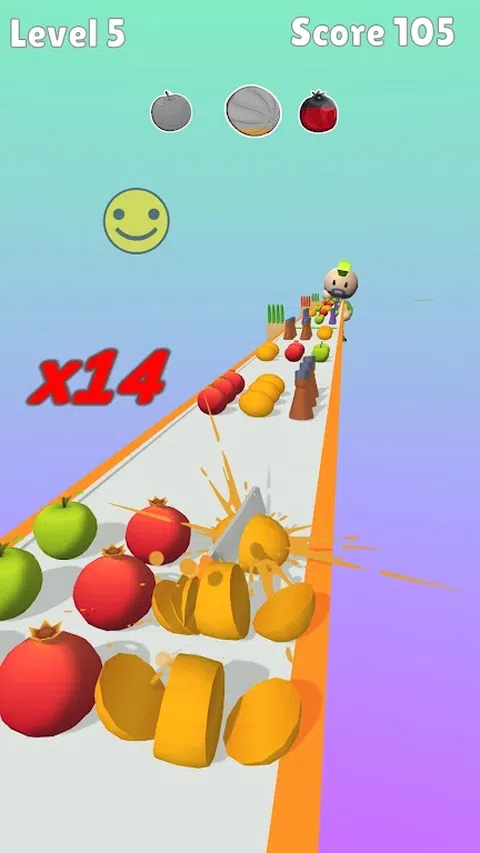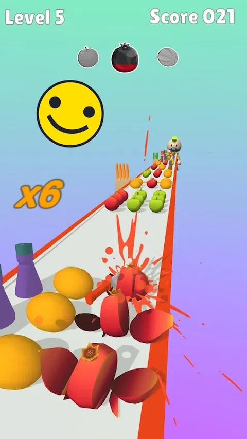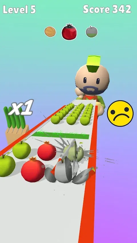 将食物切成正确的颜色。改变彩色条纹上刀的颜色。避开障碍物,例如盐瓶和胡椒瓶。喂饱买家,让他感到满意和吃饱。奖励模式中的菜刀食物。观看食物分割的甜美动画