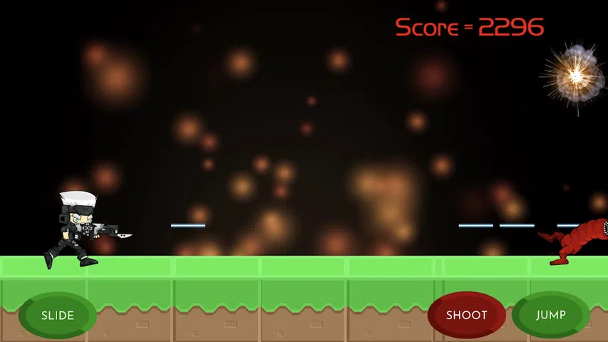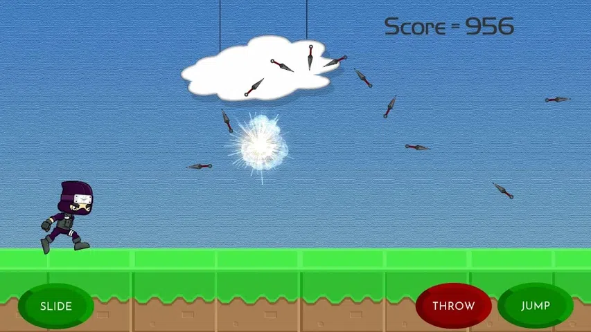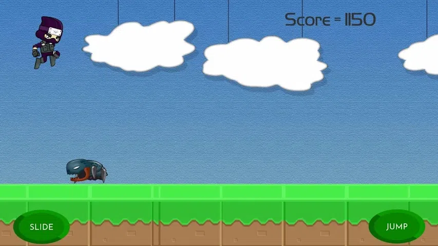 作为忍者,您需要逃避道路前面的障碍和敌人。你持续的时间越长,你得到的要点就越多。使用右下按钮跳转,左下按钮滑动。如果你得到kunai,你可以在右下方扔掉伸出按钮,你可以通过按此按钮来摧毁你的敌人。如果你得到盾牌图标,你不会从敌人那里伤害任何切线和5秒钟的东西。每10个敌人杀死玩家,你正在争夺外星生物