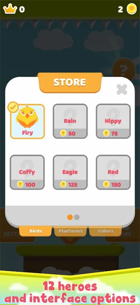 跳鸟游戏具有您以前从未体验过的涂鸦游戏动态。通过我们的游戏,您将在空闲时间度过非常愉快的时光,在公交车站等公交车,乘坐出租车旅行,在某处等朋友或在家里逗留。 在这个游戏中,我们要求您完成一些任务需要一段时间才能习惯玩,也许这会让您有点恼火。让我们看看你是否可以在游戏中小鸟的帮助下完成这些任务。 游戏的逻辑很简单:将传教士鸟跳到平台上并收集硬币,就是这样=) 让我们看看您可以从数百万玩家中获得多少任务。或者,如果您在无尽模式下玩游戏,您将能够跳上多少个平台以及您能够收集多少硬币? 如果您稍微玩一下游戏,就会发现我们保留了一些用户界面功能供您使用。 通过完成任务模式中交给您的任务来赚取金币。尽量小心地花掉你赚取的硬币,因为有些任务会要求你购买不同的鸟。不要忘记访问我们的网站。玩得开心