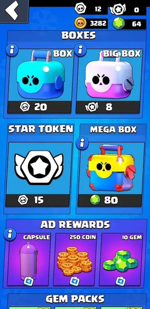 单击令牌以获取它们。 打开宝箱可获得金币、能量点、新斗士和明星升级。 升级您的 Brawler 以获得更多资源。 以及更多