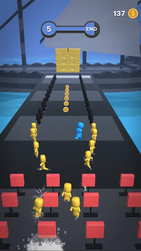 避开陷阱和障碍物,收集硬币,聚集工作人员。 -滑动手指以控制角色 -聚集你的船员 -保护他们免受敌人和障碍物的伤害 -聚集的人越多,越容易破墙 -收钱并购买人物和服装