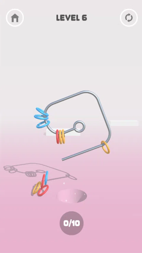 在 Slide Ring 中,您的任务是旋转金属形状,使彩色环最终进入孔中。 你必须使用精确度和你的智慧以正确的方向旋转箍以移除环,以便环最终进入孔中。有了 Slide Hoops,您必须小心,如果其中一个最终落在外面,您就输了!祝你好运