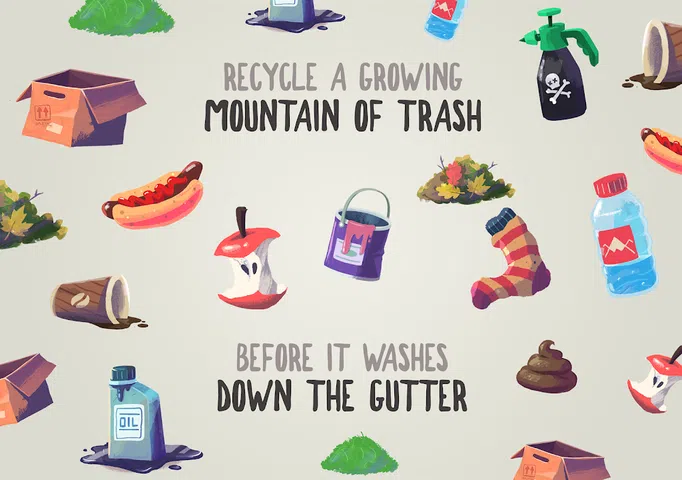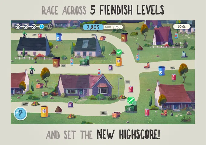 关于垃圾的游戏(这不是垃圾!) 征服五个恶魔级别,从垃圾山中拯救你的溪流。 快速思考,更快地对垃圾进行分类,以掌握每个级别。 在风暴将垃圾冲进排水沟之前,将垃圾拖到垃圾桶中。 这款有趣而快节奏的游戏也充满了事实。您知道吗,冲进下水道的草屑会使氧气流饿死,杀死鱼类和其他野生动物? 从狗粪和汽水罐到袜子和纸板箱 - 一切都有一个合适的地方。它不在排水沟里