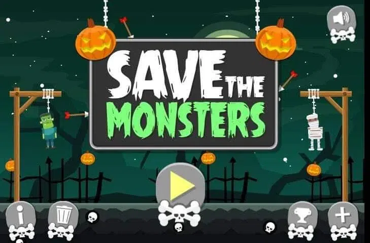 注意:免责声明- 这个应用程序是一个访问几个页面的简单工具。我们不声称与我们提到的实体名称上的品牌有任何直接或间接的关系。我们尊重各自网站的条款和条件,并在使用名称和徽标时遵守所有必要的准则。我们在我们的应用程序中使用了无版权的图片,但如果您(网站所有者)发现任何违反您的条款和条件的内容,请写信给我们,我们将尽快解决问题。 Save the Monsters 是一款出色的万圣节主题游戏,您必须使用弓箭将怪物从绞索中解救出来。该游戏具有酷炫怪异的图形和音乐,以及令人兴奋的游戏玩法。在每个关卡中,您必须使用弓箭向固定怪物的绳索射箭。单击并按住以拉回弓弦并移动鼠标以瞄准它并增加你的力量。 第一关一开始很容易,只有一个目标,但随着你的进步,你将不得不释放更多的怪物。小心不要意外射杀怪物,因为它们的生命值有限。要获得满分,您必须在不击中怪物的情况下尽快释放关卡中的所有怪物。这个游戏有 21 个不同的关卡,具有很好的可玩性,所以今天就来拯救怪物吧! 开发商_ Save the Monsters 由 Qky Games 开发,Qky Games 开发了许多 HTML5 游戏,包括 Save the Cowboy