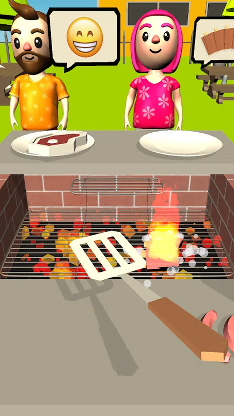 你能洗牌所有客户的订单并在不燃烧的情况下交付吗? 将配料拖入烤架,翻转顶部,两面都煮熟,但小心不要烧焦
