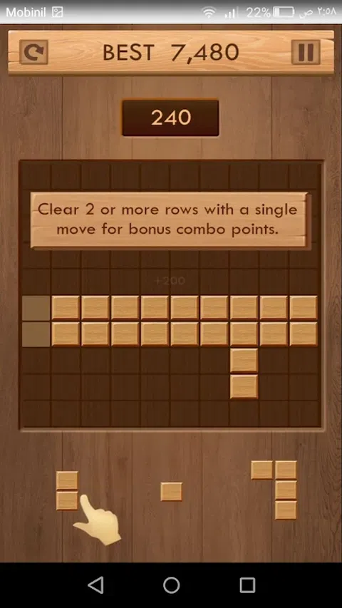 非常简单的经典风格游戏 点击木块将其移动到正确的位置 将棋子放在棋盘上,一旦你填满了水平线或垂直线,它们就会消失,帮助你为任何新块腾出空间 享受数小时的有趣和令人兴奋的游戏 享受,没有时间限制,它是开放的 易玩难懂 在您的手机上享受一个非常轻量级的游戏,同时流畅、快速、高质量、易于控制、易于理解和非常轻量级的规则 享受无限的游戏乐趣