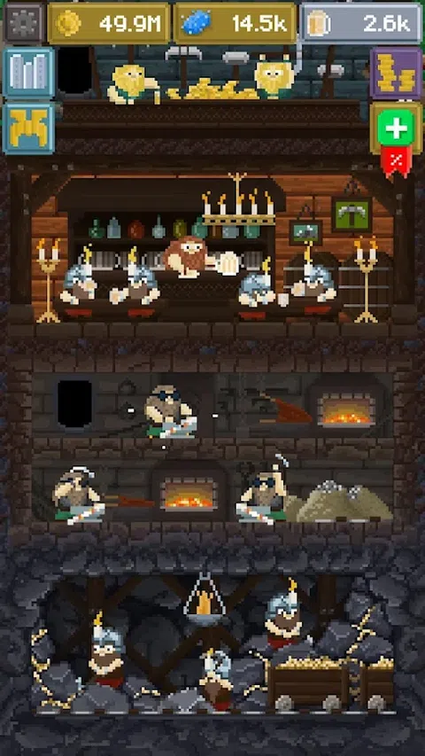 酿造一些多汁的Elixeer,让矿工矮人开采闪亮的资源!在这个独立的原创闲置点击游戏中升级你的堡垒并获得越来越多的黄金。 闲置时,您的堡垒会产生硬币。当你回来时,你将能够提高产量并获得越来越多的收益