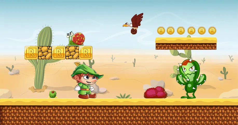 Robin Jungle World 2 是一款经典平台游戏。带你回到学生时代。 罗宾的祖传宝石被邪恶的怪物抢走了。为了夺回金币,罗宾开始了他的冒险之旅。 控制罗宾奔跑、跳跃、扑向怪物。开始你的冒险,穿越五个世界,粉碎那些棘手的怪物。充满意想不到的障碍,努力到达最终目的地。然后罗宾可以拿回他的宝石。你准备好了吗? Tips:在半空中攻击地道怪物,二段跳越过那些长长的缺口。 特征: - 全新解谜元素,刺激冒险 - 经典平台游戏,易于控制 - 华丽的图形,生动流畅的动画 - 100 个精心设计的关卡,充满挑战 - 大量棘手的怪物,难以对付 - 自定义道具,解锁升级,助你一臂之力 在密道中找到隐藏的宝箱,打开它们,给你惊喜!但要注意这一点:怪物总是带着宝物。是时候去冒险了!免费下载!让我们跑跳