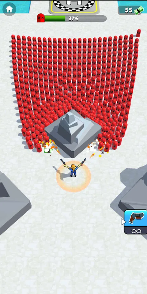 这是一款简单但非常有趣的射击休闲游戏。无限子弹,每过一关,都会获得武器碎片。收集武器碎片合成高级武器。当心。敌人很多。保持距离。同时,敌人还有他们的国王。这是非常危险的。打败他