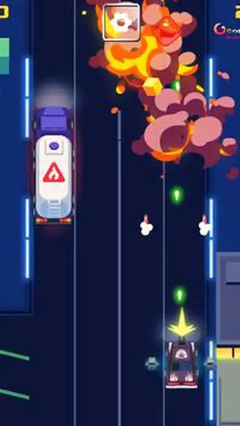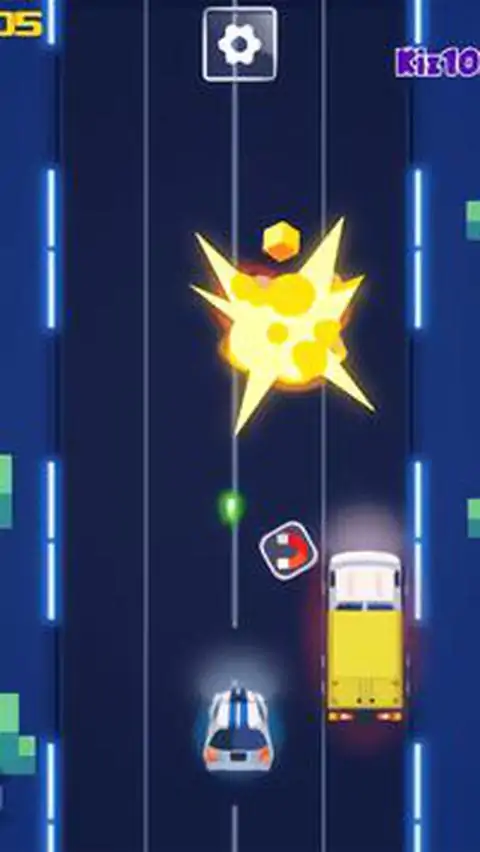 City Blast Racing是我们手游的一款城市赛车游戏。这是我们最喜欢玩的手机赛车游戏之一。只需单击大播放按钮即可开始享受乐趣。如果您想要更多类似的游戏,请查看《Traffic Run》或《Traffic Run Christmas》。 在《城市爆炸赛车》中,跳进你的装甲车,系好安全带,准备上路。当太阳落山时,城市里真正的活动开始了。你准备好穿越各种敌人,射击他们,躲避他们的攻击,并在等待着你的众多危险中生存下来吗?在线警车赛车游戏免费玩 普通汽车无法完成这项工作,因此您应该寻找其他选择。不要将路上看到的车辆误认为是平常的交通。这些是你无情的敌人,试图摧毁你。该游戏的目标是通过击败其他车辆来尽可能长时间地生存。您的汽车会自动发射子弹,因此您只需担心在车道之间移动即可。在现实生活中,在这样的交通中行驶是相当具有挑战性的,但在这个游戏中,你不需要驾驶执照就能做到这一点!您可以使用鼠标或箭头键来控制您的汽车。一开始,你有 3 条生命。每受到一次伤害,你都会失去一点生命值。生命耗尽会导致你爆炸并输掉游戏。您可以从屏幕左上角检查您的健康状况。被摧毁的车辆会掉落金币,有时还会掉落能量道具。您可以使用金币解锁并使用游戏内商店中的不同汽车皮肤。你通过的汽车数量就是你的分数,你可以从屏幕右上角看到它
