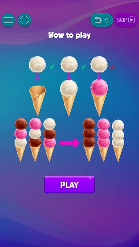 将冰淇淋颜色全部分类到一个蛋卷冰淇淋上。顾客讨厌不匹配的颜色,因此您必须通过将冰淇淋从一种颜色上取下并将其放在匹配的颜色上来解决难题。你必须这样做,直到只有所有颜色匹配的蛋卷冰淇淋为止。 ASMR 游戏通常是关于触摸某些东西、感受某些东西。这个游戏不同。如果您像许多人一样,当颜色不匹配或接触其他颜色时,您将无法忍受。如果是这样,那么您就像这些顾客一样,希望他们的冰淇淋得到整理,这样他们的冰淇淋上就不会沾上任何颜色。您必须对冰淇淋的颜色进行分类,以便任何不匹配的颜色都不会接触到蛋卷冰淇淋上。难度范围从非常简单到非常困难。对颜色进行排序非常有趣,并且在完成关卡后会非常令人满意。 有数百个分类级别可以满足任何大脑的需求。如果你只是想坐下来,放松一下,整理一下颜色,那么你可以尝试最简单的难度。但是,如果您准备迎接排序挑战,那么您可以尝试最难的难度,并用您的大脑对最困难的颜色拼图进行排序。 强迫症游戏可以满足您以自己想要的方式解决问题的需求。许多人不得不敦促把事情理清,并按照自己的意愿解决。这个游戏可以让你摆脱强迫症,解决谜题并修复蛋卷不匹配的颜色。像这样的强迫症游戏会刺激大脑,让你感觉良好和满足。有很多游戏都使用 ASMR 来让你的大脑感觉良好,而这款游戏无疑是那些优秀的 ASMR 游戏之一。 ASMR 和强迫症在这个游戏中齐头并进。分类冰淇淋满足了分类颜色的冲动,同时还给你分类了美味的东西 - 冰淇淋