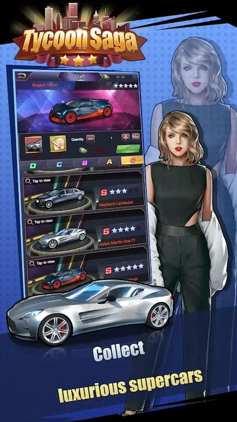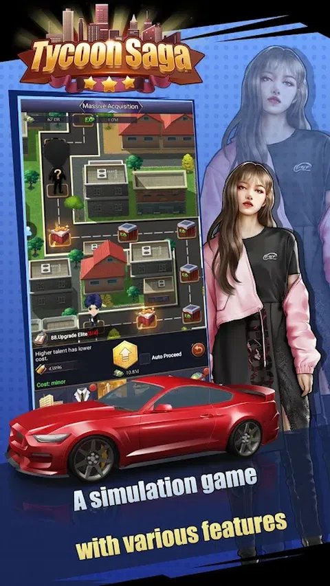 规则简单,系统多样,人物设计精美。休闲游戏大亨传奇将为您带来全新的体验。 >特点 >房地产 >精英 您可以派遣精英到房地产或部署到故事。你可以升级、学习、高级研究和安排特殊车辆来提高它们的统计数据。 >专车 特种车有S、A、B、C、D 5个等级。每个年级有5个级别。 3 辆低等级汽车可以制作成一辆高等级汽车。您可以修改或增强特殊车辆以提高其统计数据。 >故事任务 你可以部署精英并花费一些钱来进行故事任务。击败boss即可获得丰富的物品和经验值。 >投资 您可以选择合适的项目进行投资,并获得经验和重要物品。 >并购 >矿物 >豪华沙龙 你可以花钱在沙龙里挑战精英。挑战成功,每天可以给精英送礼物,获得精英碎片等奖励