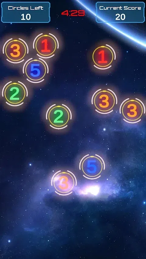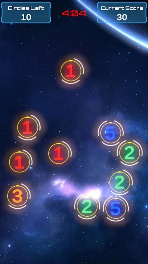 目标是触摸所有圆圈并让它们同时摇动,并在倒计时达到零之前获得尽可能多的分数。 在每个回合中,您将获得10个圆圈。圆圈中心的数字代表触摸后的抖动周期。 每个圆圈在消失之前可以触摸3次。 当屏幕上的所有圆圈都摇动时,它们会被计数并添加到总分中。之后,将生成10个新圆圈。 祝你好运