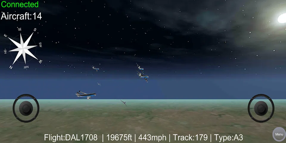 *必须有一个运行Dump1090的FlightAware ADS-B接收器* 此应用程序以 3D 形式绘制 ADS-B 跟踪器周围的飞机,让您实时在领空周围飞行