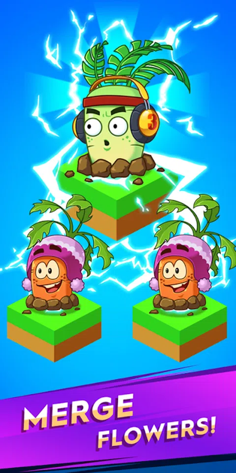 怎么玩 - 将两朵花融合到您的新超级花朵中 - 你拥有的花越多,你可以成长越快。 - 通过合并越来越多的花,升级 - 赚取更多硬币以拥有更强大的特殊花 - 设置了闲置的战斗系统。当巨大的怪物来了,你的花就会战斗 自动对抗僵尸