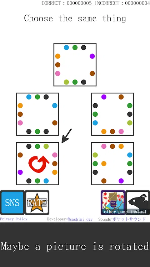 这个应用程序是一个简单的大脑训练游戏。 从选项中选择与显示的图片相同的内容。 请享受大脑训练