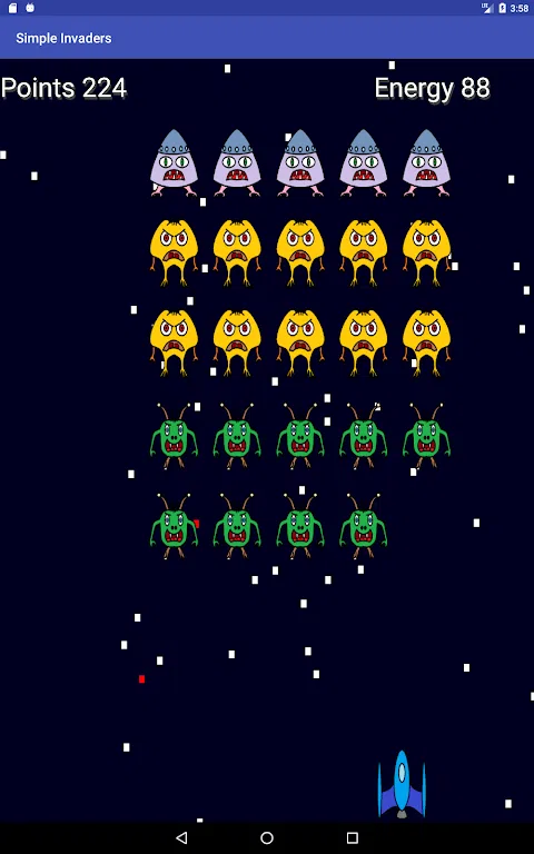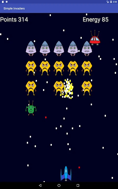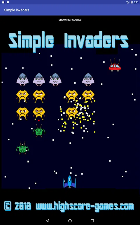 由于80年代并没有死,这里有一个来自外太空的愤怒邪恶外星人的小游戏。他们排着队,入侵我们可怜的蓝色星球。 你是我们的英雄,你将与你的飞船对抗邪恶的入侵者。用激光枪射击以清除敌人的防线。 有时敌方首领会出现在进攻队伍上方。射击它们以获得更多火力或补充盾牌能量。 尝试消灭尽可能多的外星人,但是即使您清除了一个攻击单位的所有防线,另一个单位也会出现. 这个游戏是免费的!唯一的应用内购买是少量禁用所有广告的可能性。 玩得开心