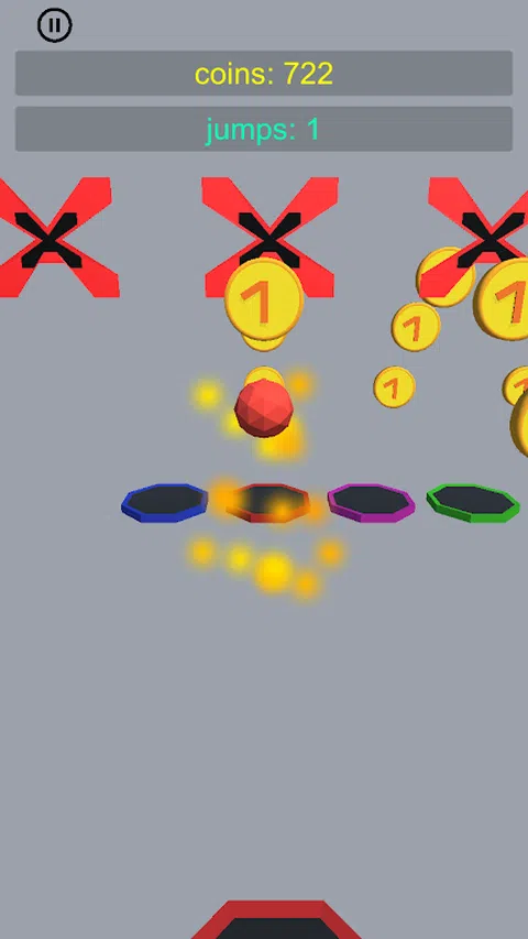 您是几何图形,从蹦床跳到蹦床。 避免红色障碍物,并始终跳上与您的颜色相匹配的蹦床。 控制: 您可以通过滑动来左右移动
