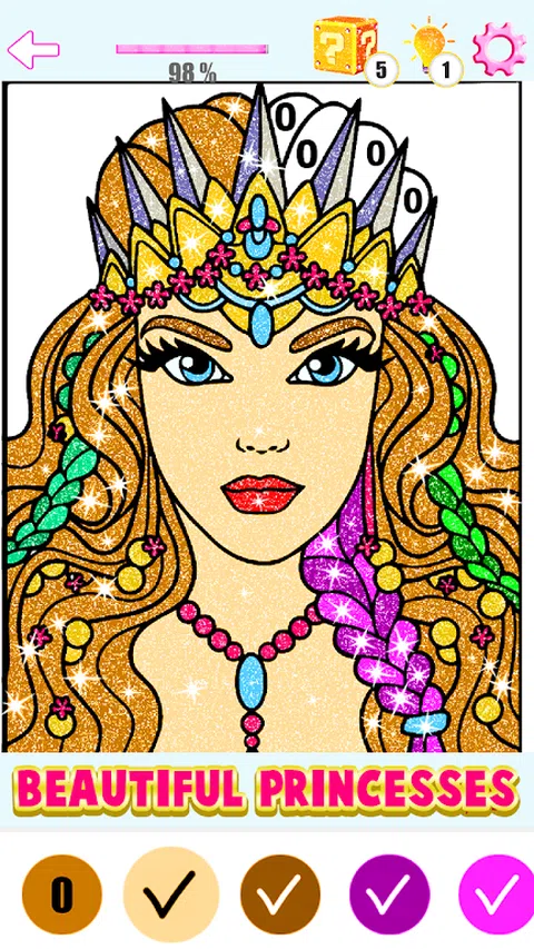 公主着色书按数字闪烁颜色