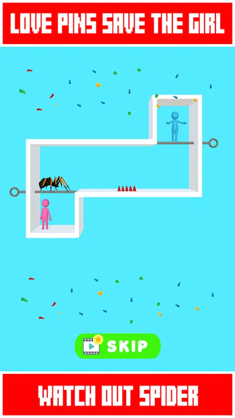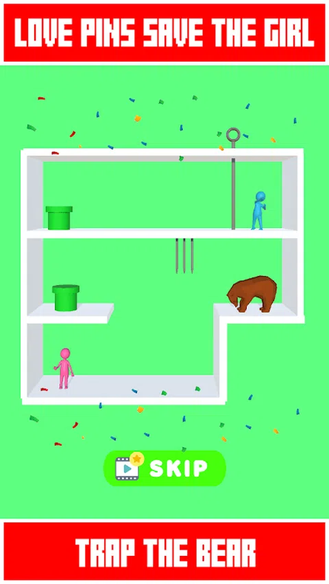 Love Pins 这是一款益智游戏,讲述如何拯救你的女孩。你的任务是拯救女孩,但要小心熊、鳄鱼和棘手的陷阱等。把男孩和女孩带到一起! Love Pin是一款烧脑的高智商益智游戏,但是特别容易上瘾,一直在玩!如何拔出别针并拯救男孩或女孩取决于你! 在拔出别针之前先花点时间想想,否则你的女孩会被熊、蜘蛛咬伤