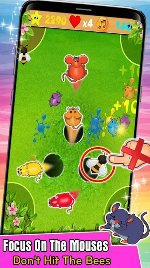 Mouse Smasher: New Punch Mouse Legend - 让我们快速触摸屏幕杀死老鼠。 在最好的免费和有趣的游戏中用你的手指粉碎老鼠,类似于 Ant Smasher 但不喜欢! 如何玩 Mouse Smasher:New Punch Mouse Legend: 用手指快速敲击、击打、粉碎和击退这些 Mouse Smasher - 击中所有这些不安全的老鼠以杀死它们。 - 不要打蜜蜂,它们会烧死你,让你失去一条生命 - 太让人上瘾了