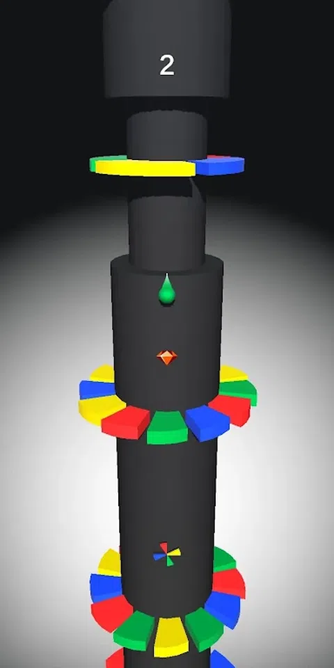 这个游戏玩起来很简单 玩家只需从与螺旋颜色相同的颜色传球即可 玩家可以通过定期收集钻石来得分 球与变色器碰撞后颜色会改变 会有不同类型的螺旋形式的障碍 * 玩得开心并享受游戏
