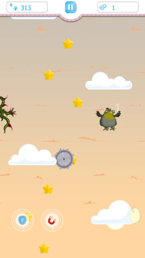 你喜欢鸟儿和天空吗? 那么这款游戏适合您。 这个无尽的游戏是关于一只飞向天空的鸟 继续往更高处走 向右和向左按以进行移动。 保护自己免受不同的敌人