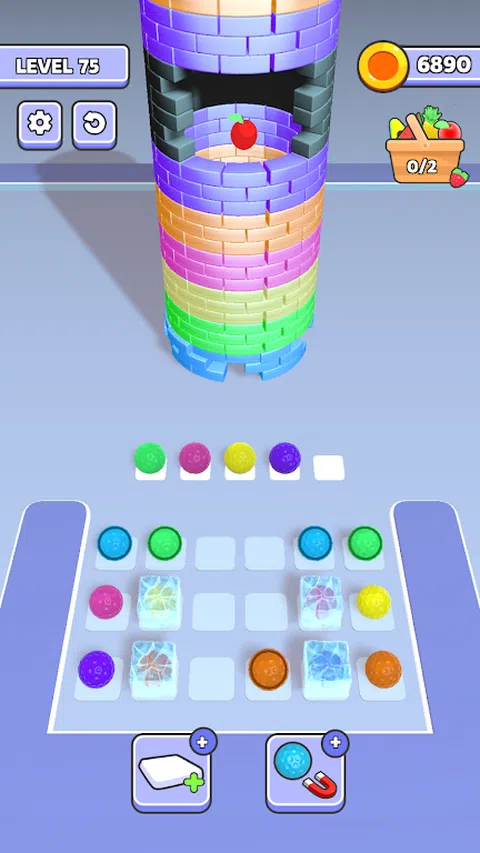 这座塔需要被推倒。通过将球与正确的颜色匹配,将其降落到地面