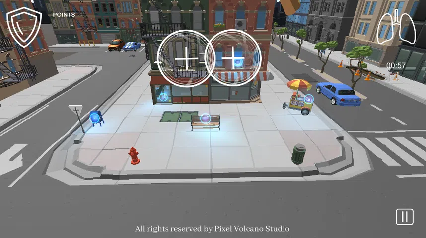您的城市受到致命飞行空中病毒的攻击。您的目标是探索您的城市,屏蔽肺部,赚取积分并解锁您的城市