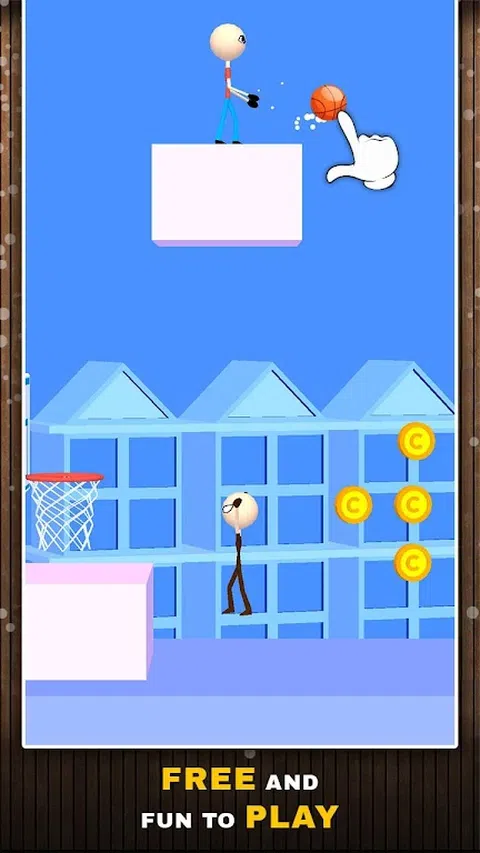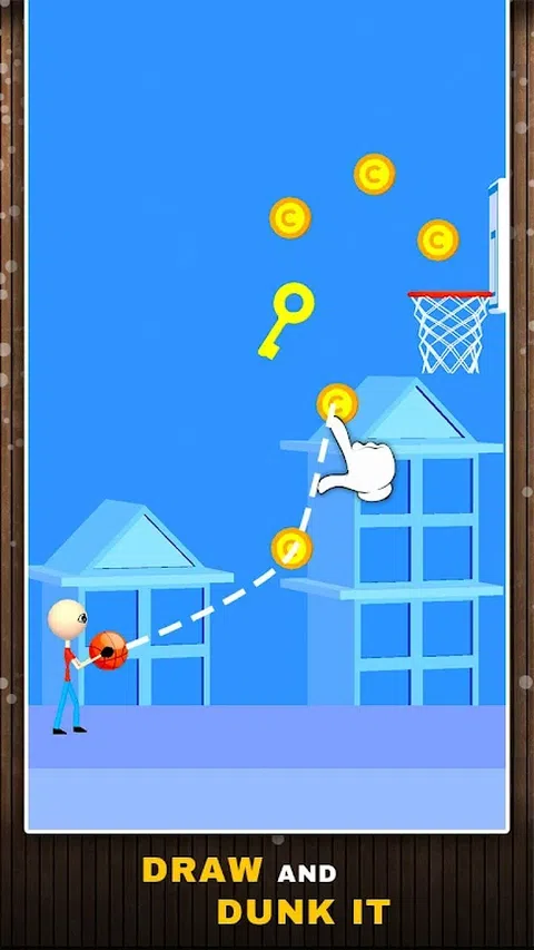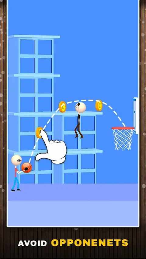 在“篮球灌篮”中,将会有一个涂鸦来举行篮球比赛,而您的目标是将其撞入篮筐。 在每个级别中,您都需要用手指绘制路径,篮球将遵循相同的路径。 在每个级别,您都必须收集所有硬币,如果您错过了一个硬币,那么该级别将失败。使用硬币,您可以解锁球和火柴人角色的新皮肤。 当球在路径上移动时,如果您按住敲击,则球将暂停。当对手火柴人跳跃以阻碍您的行进时,您可以使用此工具。 玩篮球扣篮,并享受将扣篮得分打入篮筐的乐趣