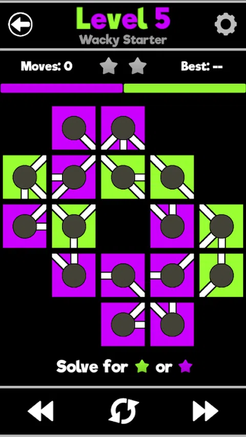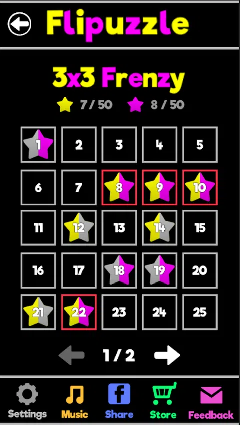 一个新的,逐渐上瘾的拼图游戏,具有独特的概念。 点击块以翻转该块和链接到它的所有块。每个方形都有一个线条图案,显示它与之相关的平方。你的目标是解决每一边赚取那种颜色的明星。这意味着每个级别实际上是两个级别!随着数百个级别开始,这场比赛将使您的大脑放在测试中。而且最好的,它可以自由玩! 拼图尺寸和困难范围,开始小于2x3并移动到5x5。一些“古怪”拼图包装脱离标准的“网格”型式,并为某些非常有趣的难题制作。像疯狂一样轻拍或者尽可能多地解决你的时间。 Flipuzzle是一种休闲的益智游戏,吸引任何和所有游戏样式。 每日谜题允许您的完美主义者日常连环。不要错过! 在您努力为每个级别获得两颗恒星时,请设置心情,放松您选择的3个Catchy音乐曲调。让乐趣开始! 享受