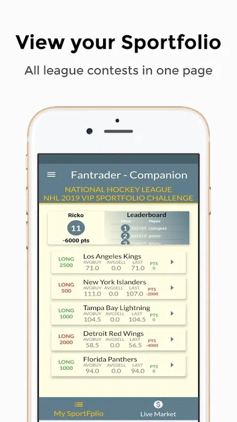 Fantrader是幻想运动符合投资的地方 1- NFL,NHL或任何联盟相当于证券交易所。 2 - 个人团队或玩家是股票。 3-股票的价格是胜利,积分或抚摸团队/球员将完成赛季。每场比赛都是相同的,但略有细微差别。首先阅读每场比赛的规则。 4-您可以在每个团队中购买或销售10 000“股票/合同”。 你相信爱国者将超过15胜?或海豚只有4胜? 5-如果您认为该团队将获得更多胜利。 6-如果您认为该团队将减少胜利。 7-如果您在4次购买10 000份海豚,而且您将它们销售在5份,则您可以获得10 000点。等等。 8-他/她在运动挑战赛结束时最多的积分胜利