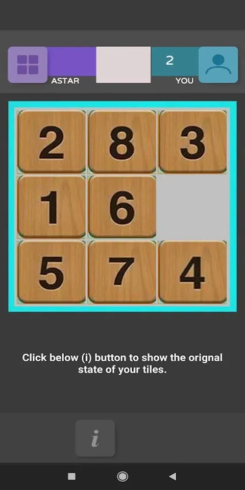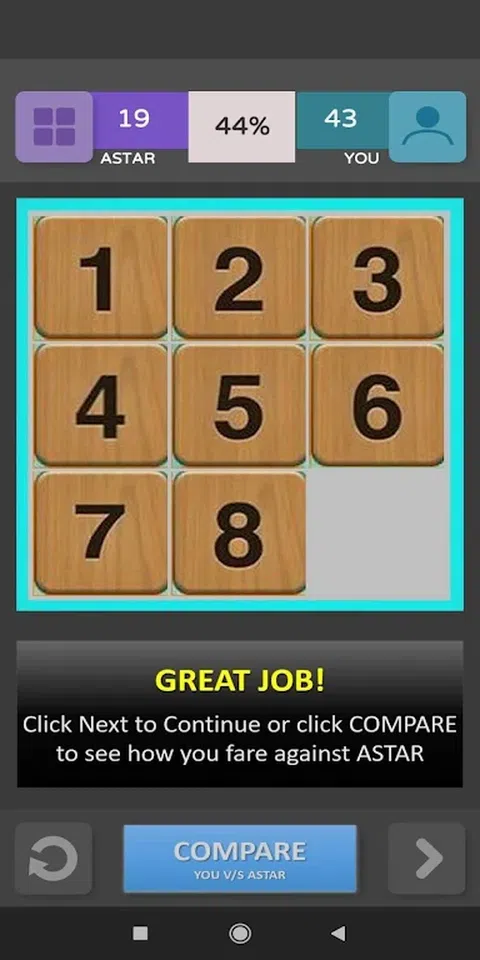 玩著名的8拼图游戏,无限级别包含有趣和有趣的图片。看看您如何对抗AI使用Astar算法做出的动作。您的分数是通过将AI生成的解决方案的移动次数除以您为解决难题所采取的移动次数得出的。玩得开心