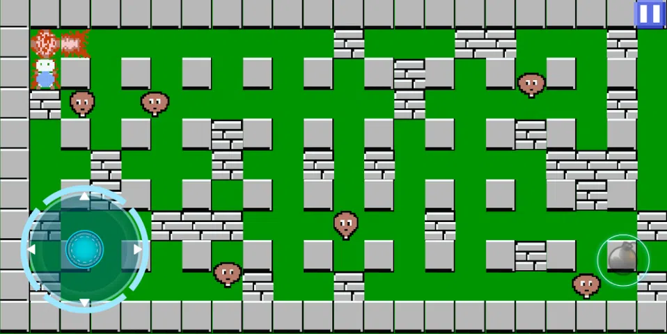 Bomber Hero - Bomber Legend 是一款经典的游戏类型,有许多关卡可供探索。 炸弹将在预定时间后爆炸,或者如果您在某些级别获得炸弹,则通过吊杆爆炸控制进行爆炸。 如果,一些特殊技能将会丢失。别担心,您可以在下一个级别再次获得它。 消灭所有怪物后,打破砖块,打破方块,找到隐藏在砖块下的门,进入下一关。 尝试在每个关卡中获得加电物品,这个物品也隐藏在瓷砖下面,用你的炸弹打破瓷砖找到它。 当碰撞怪物或在炸弹爆炸范围和结束时间时你会死
