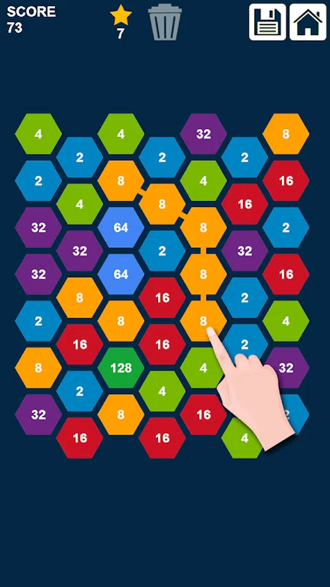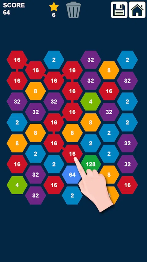 六角形2048拼图:连接和合并数字