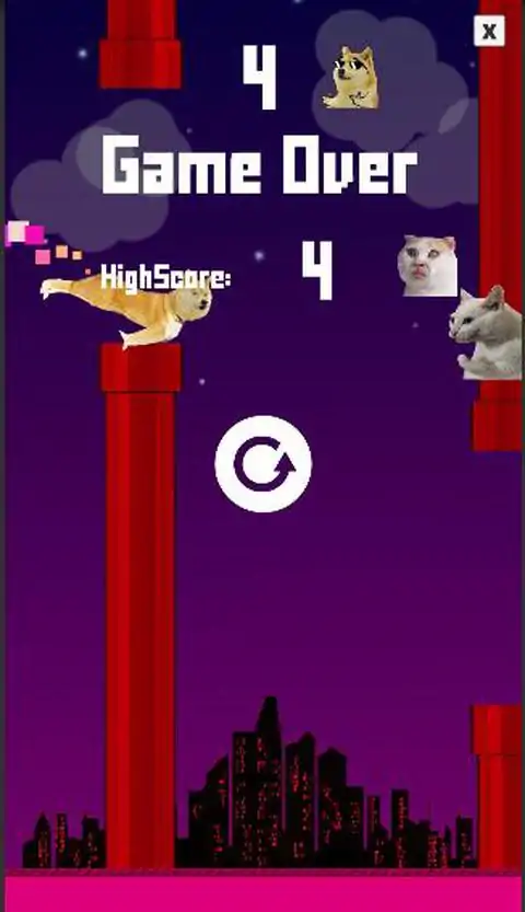 猫与狗混在一起,在游戏中你将成为狗并抓住那只猫。如果你能抓住那只猫! 游戏规则: 请点按屏幕上的点按移动狗避开障碍物追逐猫,如果将管子或蝙蝠触地将失败。 > 不要错过游戏:Flappy Doge Cat 希望您在这款 Flappy Doge Cat 游戏中度过愉快的时光