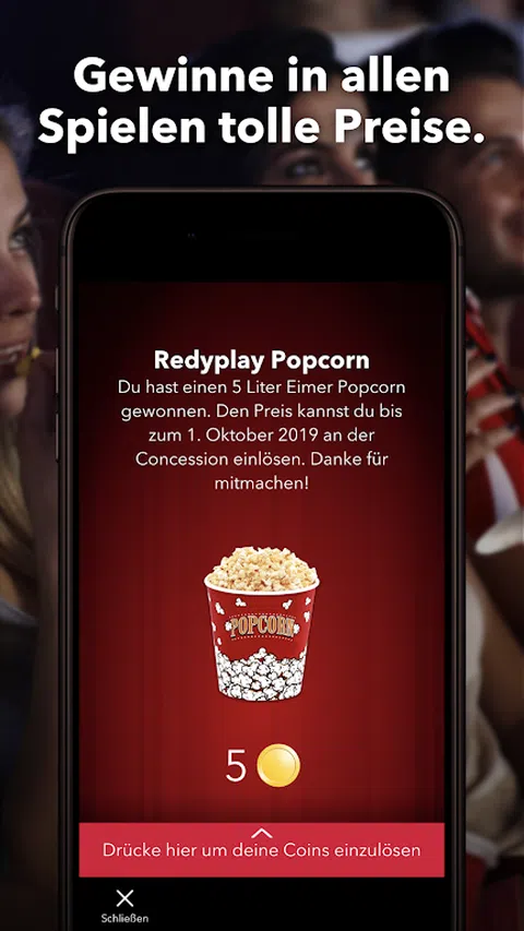 现在您可以在等待电影开始的同时在电影院玩游戏。手机就是你的控制器。 通过将您的硬币兑换成丰厚的奖品来兑换您的奖品。 转到应用程序中的“我的奖品”以获取免费的爆米花或软饮料。 准备好你的手机,享受游戏吧