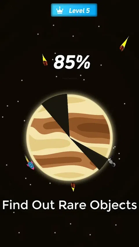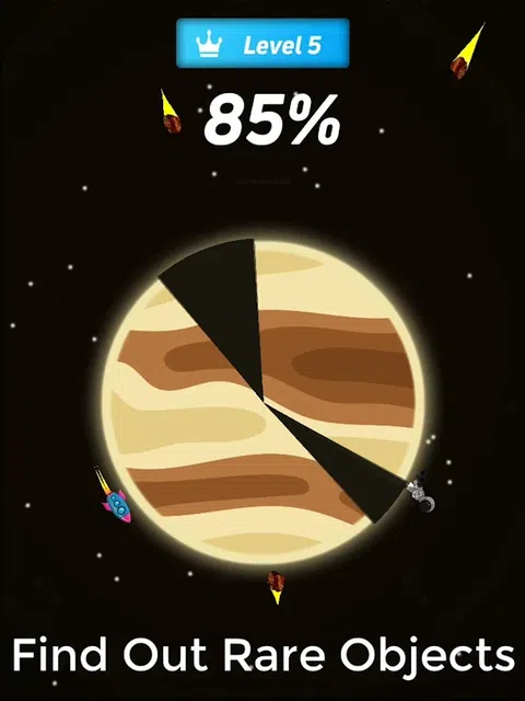 108 Planets是一款太空游戏 ,您将扮演一名宇航员,执行一项任务,为人类文明发现新的行星以求生存。这款游戏将让您在具有挑战性的关卡中投入数小时。 如果您是太空游戏的粉丝并希望离线太空游戏,那么108 Planets就是适合您的游戏。飞越行星,发现矿物质、水、宝石和很多东西。 功能 轻松控制 该游戏具有“最佳太空游戏”控件。点击以跳跃,双击以跳得更高以避开障碍物。 精美的图形 这款宇航员游戏拥有令人惊叹的图形和行星,具有视觉上吸引人的氛围。 众多关卡 超过100个关卡,您可以玩这个游戏而不会感到无聊。您可以在看电视,旅行或烹饪时以字节为单位玩此游戏。 太空主题 以太空为主题,太空爱好者一定会在这个游戏中找到值得珍惜的东西。 令人上瘾且具有挑战性的游戏 这款最佳太空游戏具有易于玩但令人上瘾的游戏玩法,让您想经常玩新关卡。 避开飞船、航天飞机和石头等障碍物,找出每个行星都有什么
