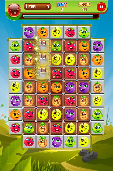 “通过将 3 个或更多水果放在同一条线上,轻松玩滑动匹配 Fruit Splash! 通过擦除水果获得分数。您可以制作更长的水果链以获得更多积分! 水果匹配 如何在每个级别上获得 3 星? 在匹配 3 个水果之前,找到最佳匹配。 理解这一点需要时间,但玩几关后你就会学会 滑动水果并使它们飞溅以达到要求的分数并获得星星 怎么玩: - 水果匹配 3 个或更多相同的蔬菜 - 滑动三个或更多相同的水果来得分。 - 存档目标点以升级。 - 快速消除更多的水果可以获得额外的分数
