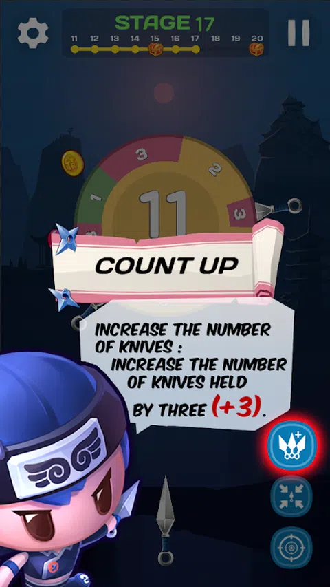 * 特点 1.只能通过简单的触摸来玩游戏。 2.这是一个简单的模式,当通过发射酷刀获得的分数总和与屏幕中间匹配时,即可清除。 3.使用您的技能更舒适地玩游戏。 - 增加刀具数量:将持有的刀具数量增加3。 - 更改刀的大小:如果您可以用其他刀折断,则可以将其更改为小刀。 - 指导方针:指导方针一直显示到您投掷它们的位置。 4.狂热模式支持每个阶段,以缓解压力并获得游戏金钱。 5.支持成就和排行榜。 - 各种成就都有。 - 支持基于最佳记录清除的阶段排名。 6.这是一款免费游戏。 7.支持低特定设备。 8.平板电脑支持 * 如何玩 1.触摸屏幕以开火。 2.中心的目标分数将减少刀子位置的分数。 3.当中心得分为“0”时清除。 4.当中心分数达到除“0”以外的“-”“+”时,游戏将结束