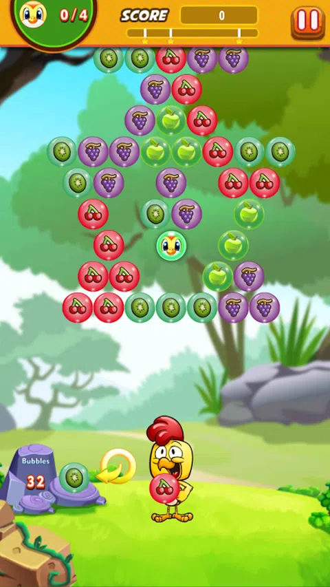 农场泡泡射击麻烦: 这个以农场为主题的泡泡射击游戏就是你的游戏 该游戏通过不同的泡泡射击任务和拼图级别提供相同的经典泡泡射击乐趣。 在 Farm Bubble Shooter Trouble 您将帮助一个可爱的小鸡仔,他在帮助可爱的小可爱鸟逃离气泡时遇到了麻烦。 扮演一只热爱农场的鸡,但农作物发生了一些事情,现在所有的作物都被困在了气泡中。 除了农场的庄稼,一些鸟类也被困在气泡中。 随心所欲地弹出泡泡,继续您的农场冒险,以恢复农场并拯救鸟类。 看看你能在这个泡泡射击游戏中走多远。 射击泡泡,爆裂,弹出和清除所有泡泡以赢得关卡。 尝试在正确的地方射击泡泡以弹出泡泡并安全地营救鸟类。 有了这么多层次的泡泡拼图,您将永远不会轻易感到无聊。 尽可能多地射击、爆裂、爆破和爆破泡泡。 用你敏锐的思维和敏锐的射击技巧赢得所有关卡 容易玩,容易掌握,但很难获得星星。 Farm Bubble Shooter Trouble 是一款令人上瘾的脑筋急转弯益智游戏。 你应该小心地射出泡泡,因为你手中的泡泡有限。 如果您不喜欢当前的气泡,可以将气泡更改或与下一个气泡交换。 使用诸如彩球和炸弹之类的道具来弹出气泡。 特征: 100 多个关卡可以更多地弹出气泡 通过数百个泡泡射击关卡进行农场冒险 令人惊叹的效果和图形 迷人的图形,美丽而生动的气泡。 乐趣和缓解压力 两种模式拼图模式和无尽模式。 免费且容易玩,具有挑战性的掌握! 在游戏过程中体验所有情绪,如喜悦、恐惧、愤怒、厌恶和悲伤。 下载农场泡泡射击麻烦!击败所有的水平!玩得开心! 帮助鸟类并成为这个惊人游戏的英雄
