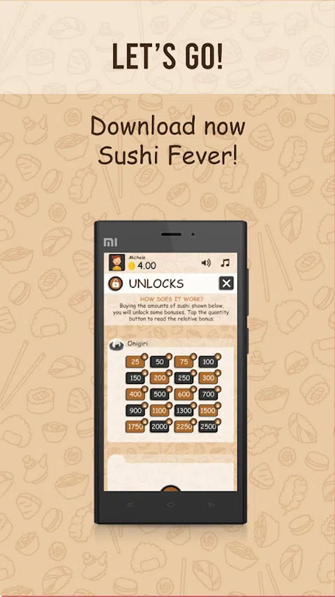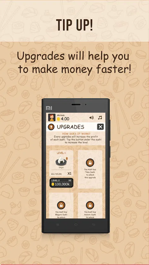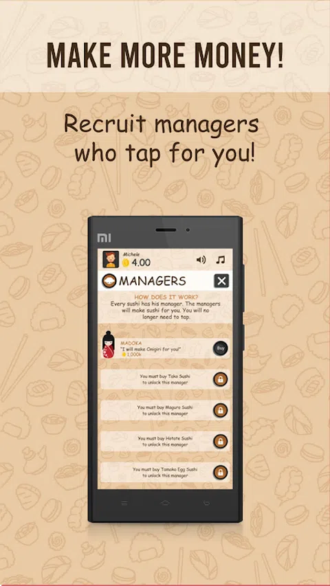 不是所有你可以吃足以满足你的寿司发烧吗? 所以,寿司发烧是你的游戏! 通过准备寿司或让您的管理人员为您准备越来越多的钱! 这很容易。准备寿司只需单击相对图标。 使用您赚取的美元,您可以购买将为您工作或升级,获取有利奖金的经理。 现在就试试!下载寿司发烧