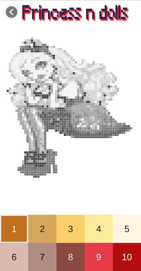 Paint By Number:Princess n Dolls Color By Number-Free Princess PixelArt Coloring 是一款免费游戏,让孩子们学习数字,让成年人放松并制作美丽的像素艺术。 如何玩按数字绘画:公主 n 娃娃着色 PixelArt: 简单易行,只需选择要着色和缩放的娃娃或公主,直到看到应该使用完全相同颜色着色的数字。当您为卡哇伊公主着色时,它将保存在您的画廊中,您可以与朋友分享,享受有史以来最好的填色拼图。 卡哇伊公主像素艺术着色。 卡哇伊娃娃像素艺术着色 卡哇伊公主 n 娃娃像素艺术着色。 公主和娃娃像素艺术着色 您可以下载您自己的按数字绘画:公主 n 娃娃着色 PixelArt 和来自互联网的图像以及从像素相机部分将它们转换为按数字绘画。只需从您的图库中选择它,调整难度即可!您自己的像素艺术图像。 下载 Kawaii Paint By Number:Princess n Dolls Coloring PixelArt 并享受它