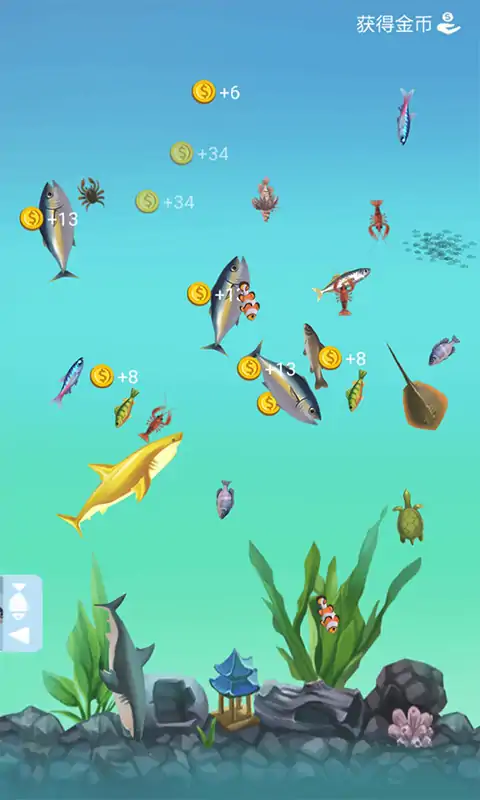 超大的海域,一起钓鱼吧! 你拥有一把超级鱼竿,能钓千米以外的未知的海域,你会钓上来什么? 也许是一条可爱的锦鲤,也许是一条美味的三文鱼! 夏威夷沙滩、热闹城市、亚马逊、北极雪境! 小丑鱼、大白鲨、美味三文鱼、蓝鳍金枪鱼! 等你来收集!