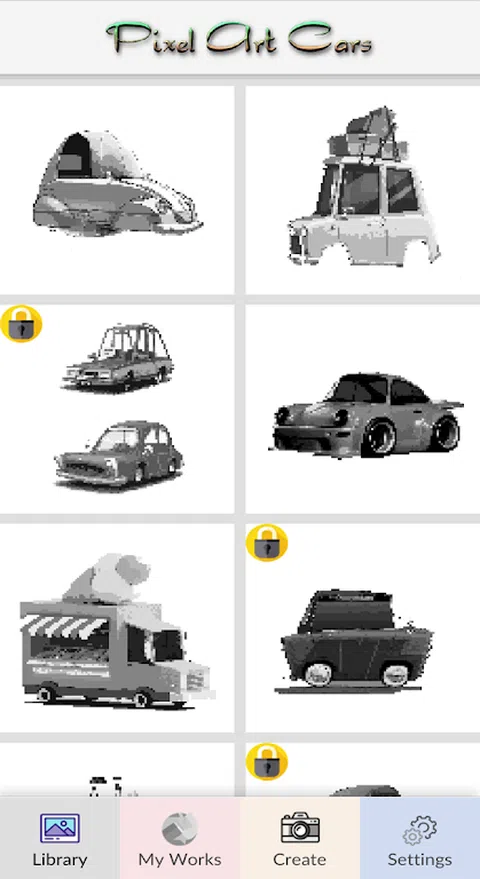 Pixel Art 应用程序用数字着色汽车是一种非常有趣的放松、缓解压力和担心的方式!今天尝试令人兴奋和令人兴奋的填色游戏!经过漫长的一天后,它会非常舒缓!练习你的着色技巧,随时随地玩得开心! 你怎么玩?简单的!和简单 用你的两根手指放大图像,直到它看起来像一个带有数字的单元格。在可用列中选择一种颜色,并用匹配的数字逐像素为单元格着色。你不需要 WiFi 来玩这个填色游戏!又名离线 我们提供各种迷人的图像。您可以找到各种口味和心情的图像。 像素艺术着色汽车不仅仅是着色书。这个应用程序也是一种有趣的方式来放松和释放艺术家的一面